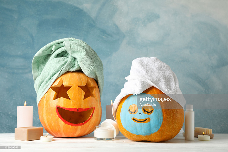 You don’t really expect to find pumpkins while searching for spa photos, and you definitely don’t expect to find them posed like they’re in the middle of a spa treatment. I don’t know about you, but I don’t usually think jack-o-lanterns when I think of a relaxing day at the spa. While I love the mud mask on the right pumpkin, it’s the lipstick on the wide grin of the left pumpkin that made me laugh. The way they’ve carved excitement into her face is hilarious and the lipstick gives it a clown-like look.