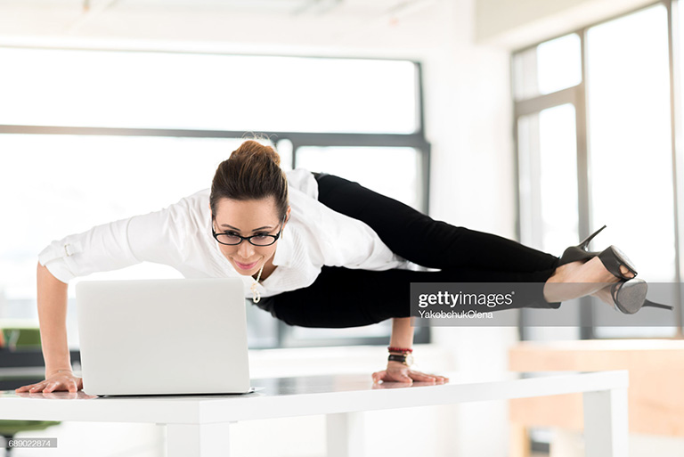 When I saw this photo, all I could think was “imagine someone doing this during a zoom meeting!” Picture it: you’re sitting there discussing something mundane and all of a sudden your coworker is doing acrobat yoga on their desk.